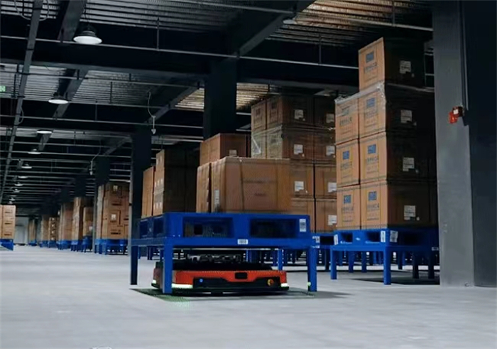 該項目包含35臺智能搬運設(shè)備(潛伏頂升式AGV),單臺產(chǎn)品可載重1000kg,定位精度±10mm,負載狀態(tài)下運行速度1.2m/s,8h高強度續(xù)航,動力強勁,行動靈活,定位精準,主要用于整托貨物的轉(zhuǎn)運及整件揀選,極大減輕了成品出入庫作業(yè)人員搬運強度,提高作業(yè)能力。