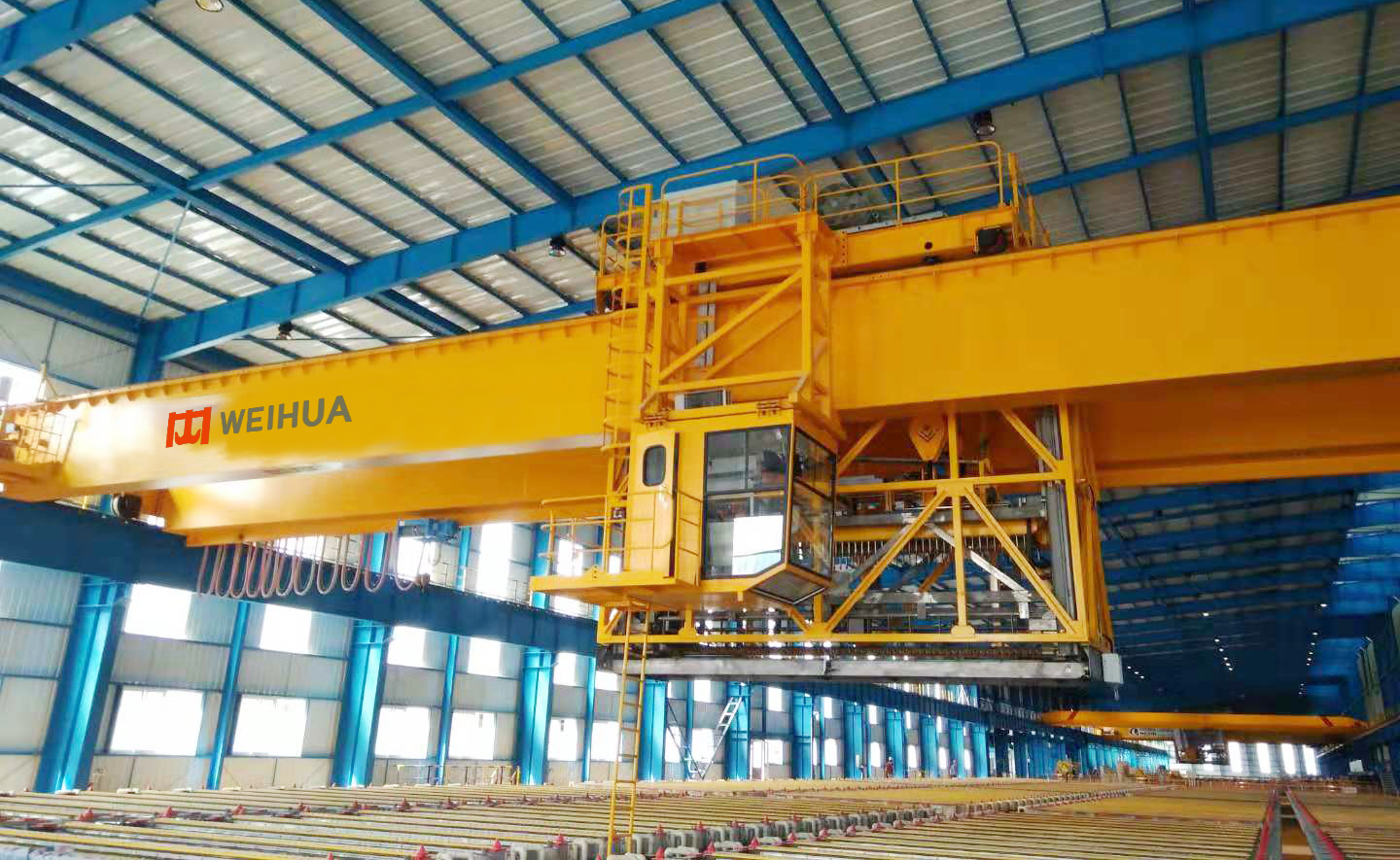 電解銅專用起重機(jī)是針對電解銅的生產(chǎn)工藝要求而設(shè)置的一種專用起重機(jī)。其主要功能是將已經(jīng)排列好的陰陽極板從排距機(jī)組上取下,吊運至空槽處,安裝在電解槽中,即裝槽;電解完成后,將陰極板取出并運至洗滌機(jī)組;將消耗殆盡的殘極板(即陽極板)從電解槽中取出并送往洗滌機(jī)組。